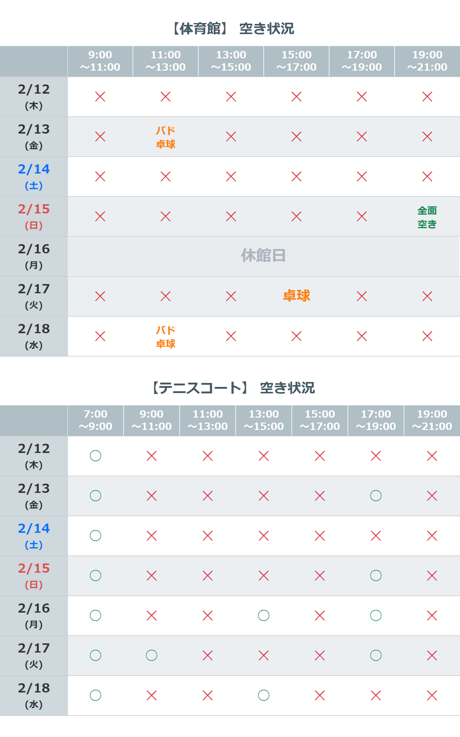 空き状況