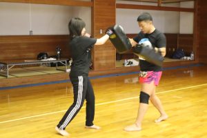 細かくパンチ、キックの角度や出し方等レクチャー。