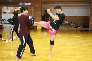 相手に当たらないように対人実戦。攻撃と防御の練習。