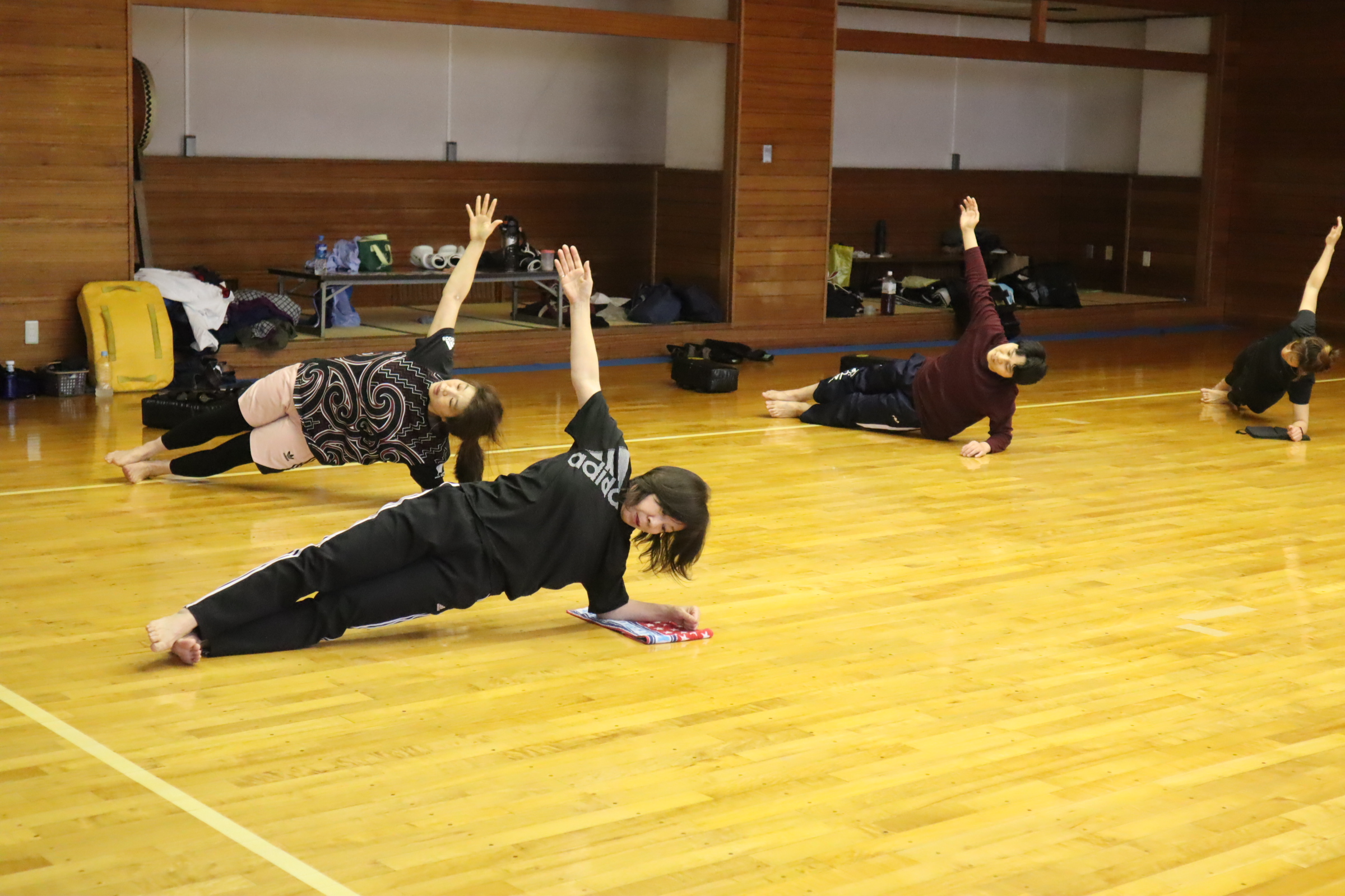 フィジカルトレーニングも初めての方に細かくレクチャー。