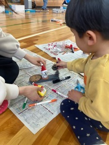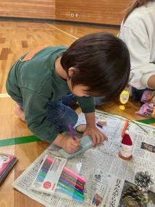 今回は、雪だるまと松ぼっくりの置物の作成と、