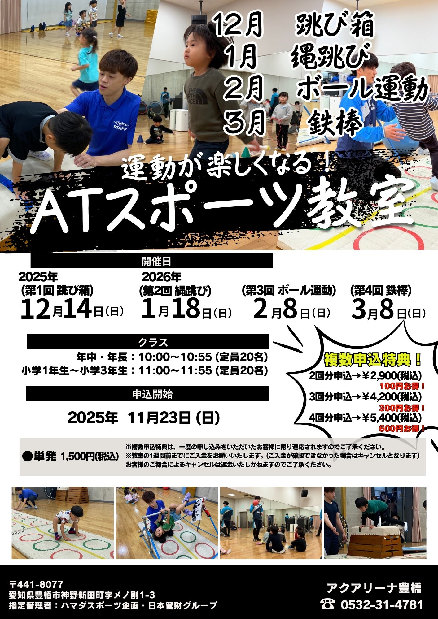 | 申込 | お申込み受付中! 【お問い合わせ】 アクアリーナ豊橋(☎0532-31-4781) お電話または受付窓口にてお待ちしております! |