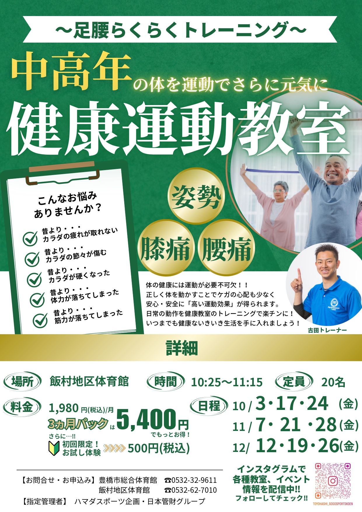 健康運動教室~足腰らくらくトレーニング~(10月・11月・12 月)